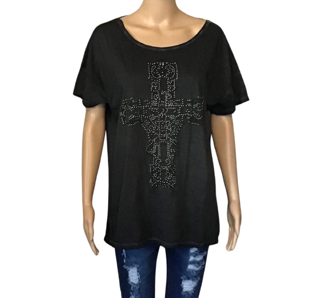 Sequin cross. Open back. Side slits. Very comfy. Loose fitting. Clearance $5