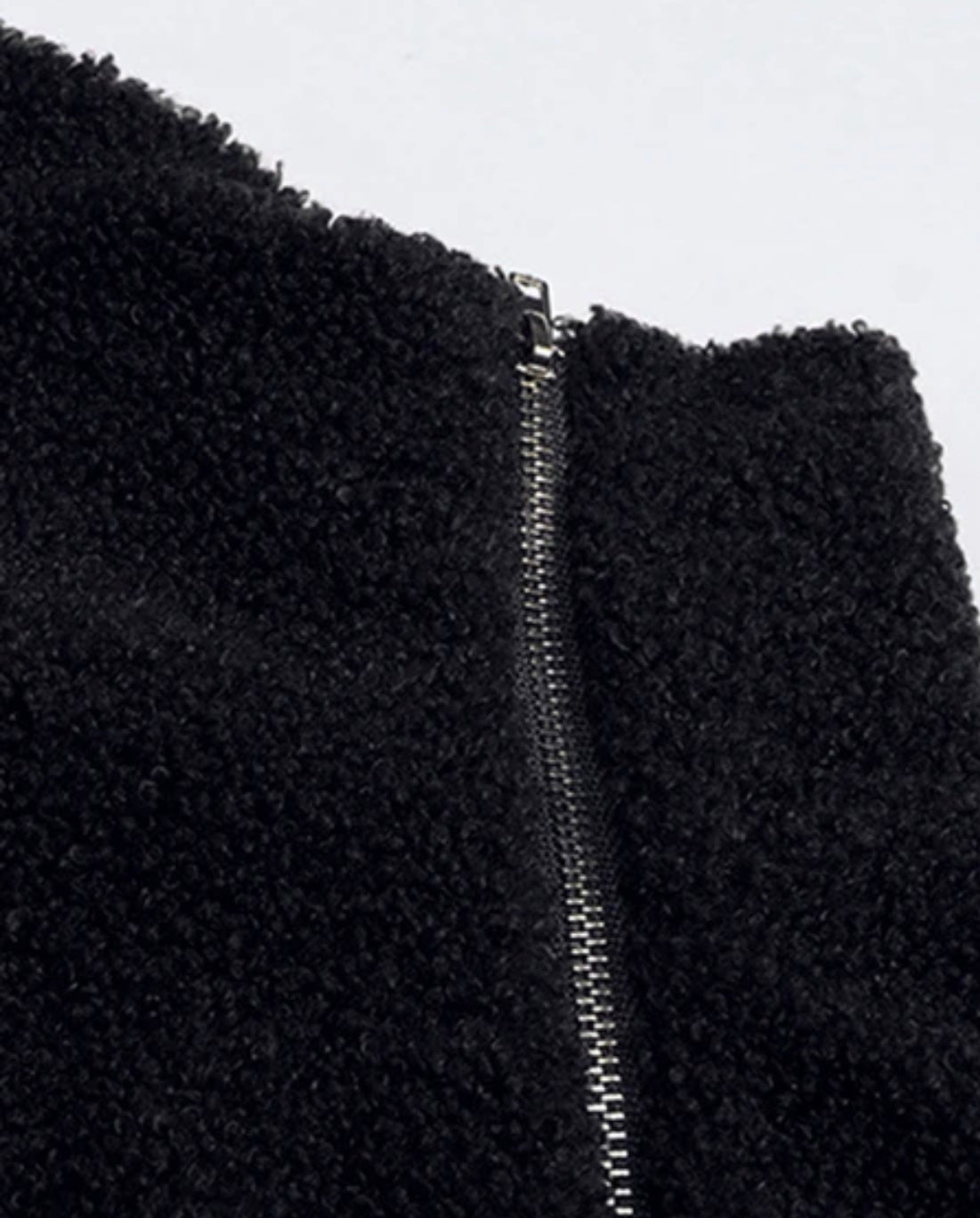 Fleece. Thick, soft fabric. Upper side zipper.