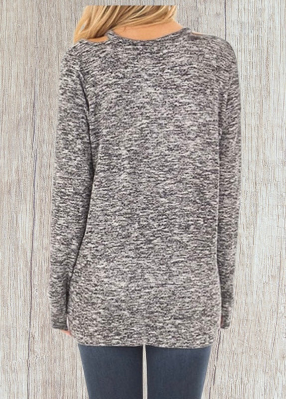 Crossed front design. Polyester/spandex. Nice soft fabric.