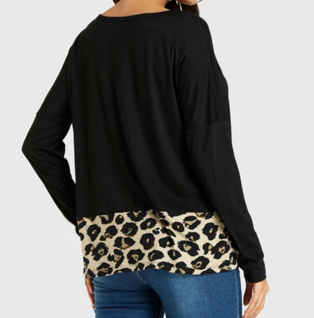Long sleeve sweater with leopard print